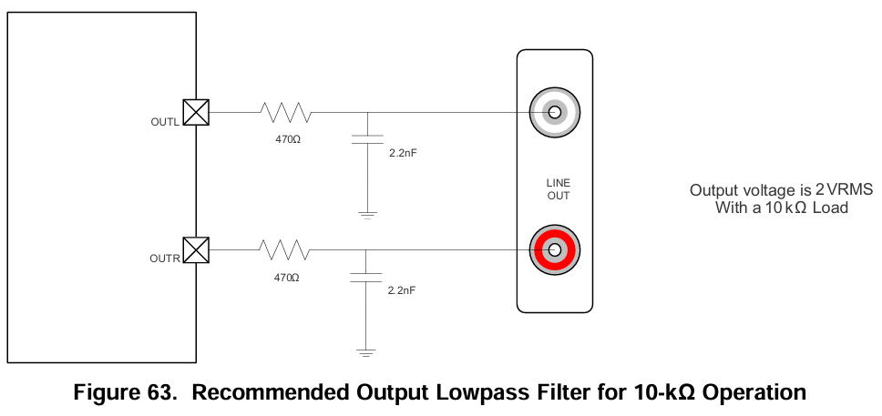 を接続していたので、問題にはならなかったのですが、どうやらPCM5142の出力にもLPFをいれた方が良さそうです。