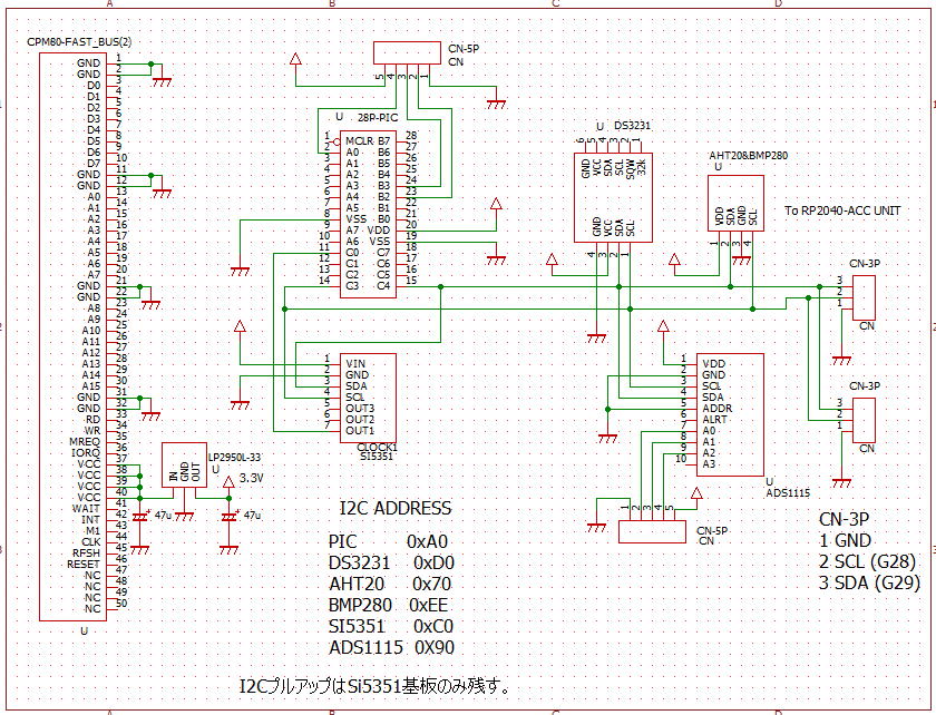 DS3231はI2Cで制御することもあり、おなじくその他もI2Cのみで制御できるように考えます。