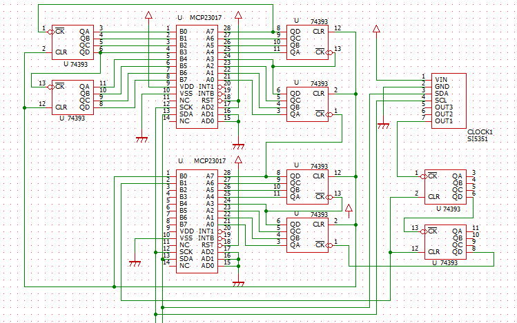 で、カウンタの値を読み込むI/Oエキステンダと組み合わせると下記のような回路になりました。