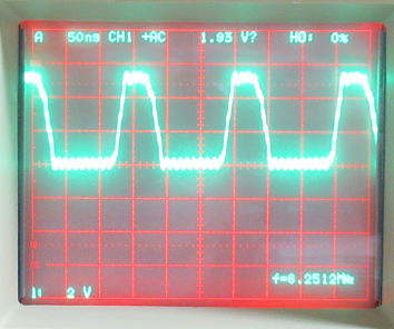 | 166MHz 約2.6倍のオーバクロックです。 動きはしましたが、波形がなかり汚くなりました。 内部でクロックが漏れ出ているような感じです。 |
