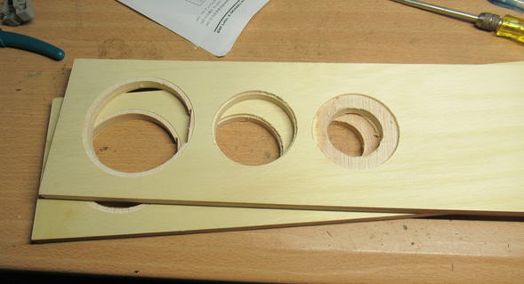 左からウーハ用、ミッドレンジ用、ツイータ用の穴です。
