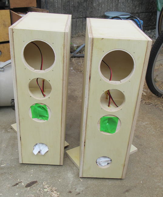 2台目の接着剤の乾燥の間に、1台目をつかってバスレフポートを調整しましょう。