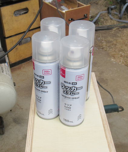 塗装にはクリアラッカーをつかいます。DAISOで200円のものを4本つかいます。
