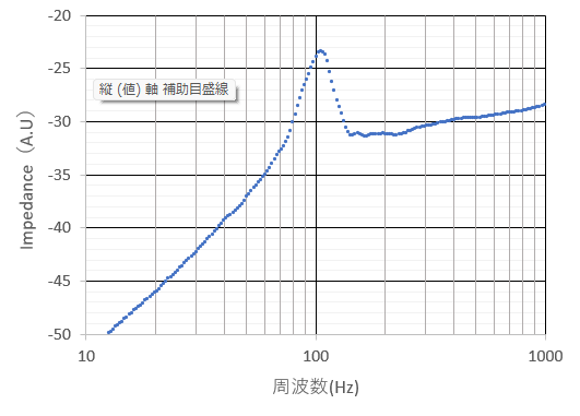 実測での共振点は65Hzです。