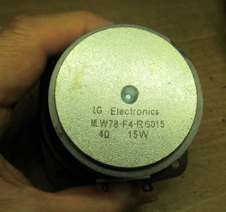 3インチ低音用。4Ω15Wです。LG電機ってあるけど、あのLGなのかな?