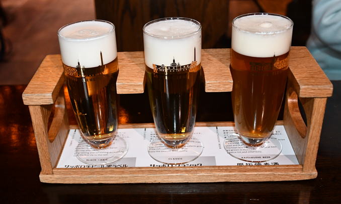 せっかくなので飲み比べセットを注文です。右端の開拓使麦酒がいい感じでした。