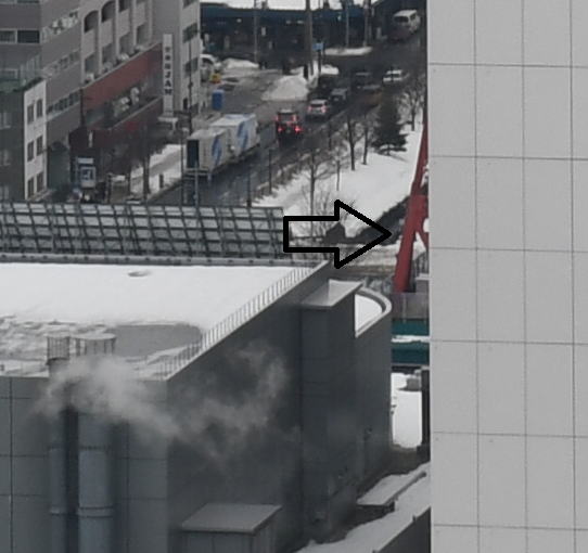足もちらりと見えました。テレビ塔は一つのビルでほぼ隠れてしまっています。