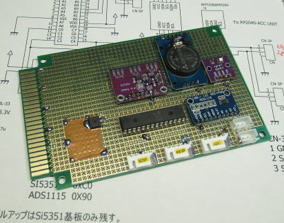 すこし寂しいので、そこらへんにあるI2Cで動くモジュール基板(ADS1115, AHT20)も追加でとりつけました.