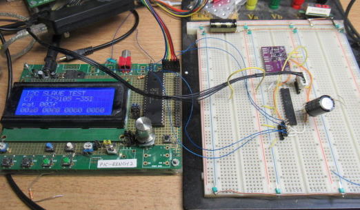 PIC間での動作確認です。右側がスレーブ、左側がホスト側です。