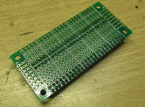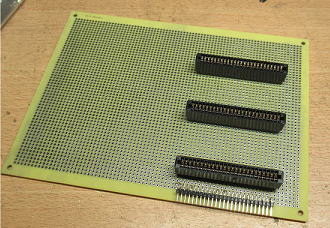 CPM80と同じサイズの秋月のユニバーサル基板にカードエッジのコネクタを取り付けです。