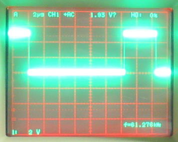 ![]() 出力周期:61kHz まともにクロックを受けきれていないようです。 |