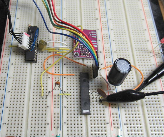 テストの様子です。左のPIC(PIC16F886)はSi5351のI2C書き込み用。