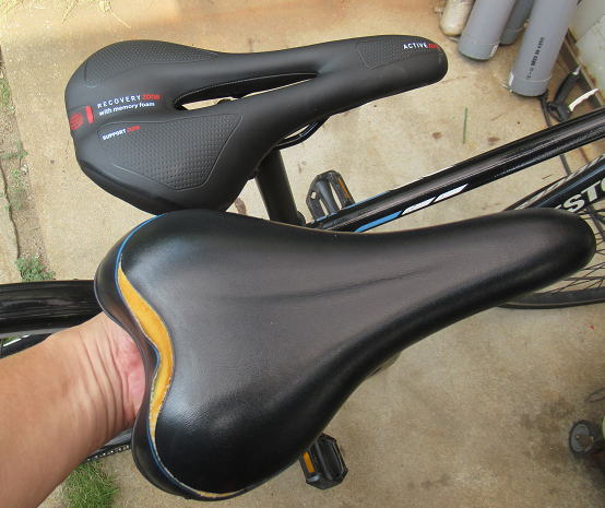 3年も乗るとサドルクッションの継ぎ目が破れてきた。ほっておくと、雨水が沁み込むと、
