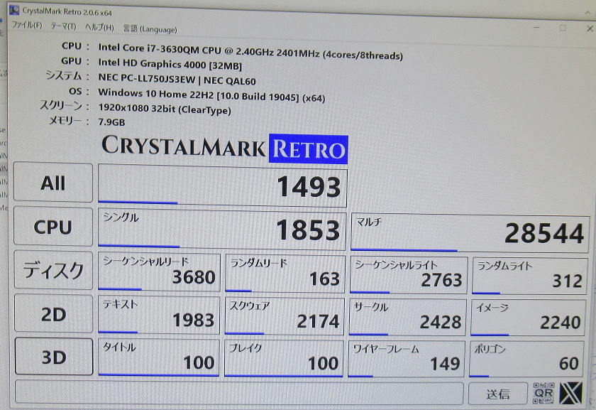 とりあえずベンチマークです。トータル速度はいままでのメインの約3倍になりました。