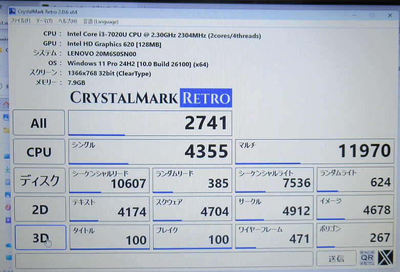 現在メインで使っているノート(第3世代i7, 8GB/SSD1TB)。完敗です。