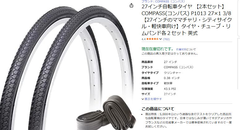 チューブとタイヤがそれぞれ2本セットで2800円ほど。だいぶ値上げしたかなあ〜。