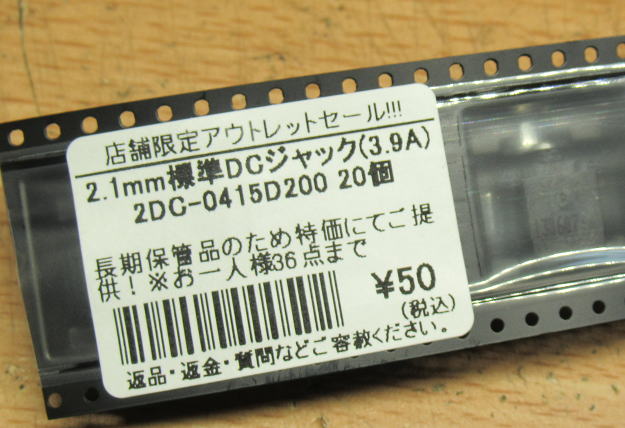 今回の目玉はこれだったかな〜。φ2.1mmのDCジャックが20個で50円でした。