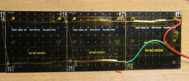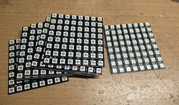 まずは8x8マトリックスLED基板を8枚ほど準備して、キューブ状に張り合わせた