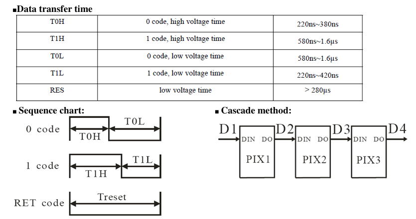 シリアル転送で動かします。パルス幅が短いので高速なマイコンが必要です。