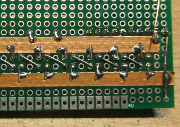 裏面はこんな感じで接続です。電源ラインはφ0.5mmの銅線をつかって、そこから各LED基板に給電です。