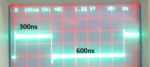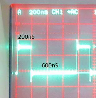 0コード送出時 H=300ns(220ns-380ns) L=600ns(580ns〜1.6us)