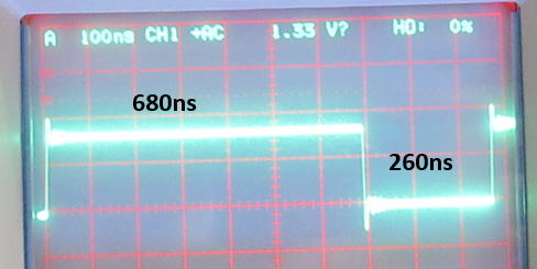 1コード送出時 H=680ns(580ns-1.6us) L=260ns(220ns-420ns)